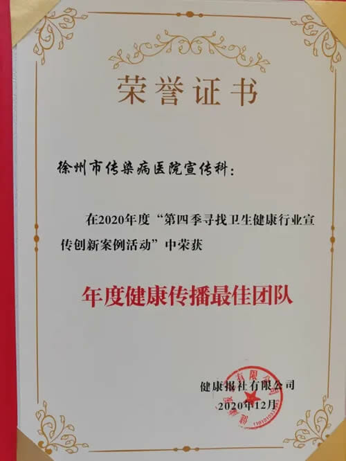 在“第四季寻找卫生健康行业宣传创新案例活动总结会表彰会”上,徐州市传染病医院荣获六项大奖。