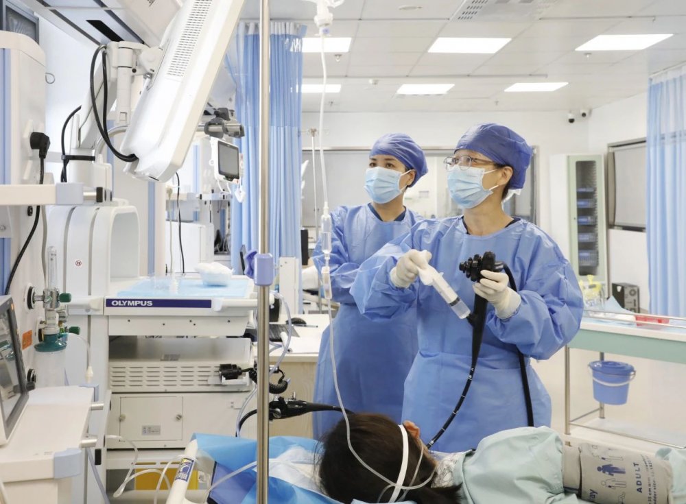 2024年1月起,随着国家区域医疗中心项目建设的推进,中心长期派驻经验丰富的内镜专家到徐州院区坐诊、指导工作。目前,北京地坛医院徐州医院常规开展ESVD、肝硬化患者食管胃静脉曲张的内镜筛查、预防诊疗、胃肠镜检查及消化道息肉镜下治疗,同时开展了ERCP取石、鼻胆管引流术等高难度内镜治疗。